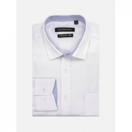 Модель прямого кроя, комбинированная контрастной тканью по внутренним вороту и манжетам. Цвет белый. Длинный рукав. Товар соответствует техническому регламенту о безопасности продукции легкой промышленности.