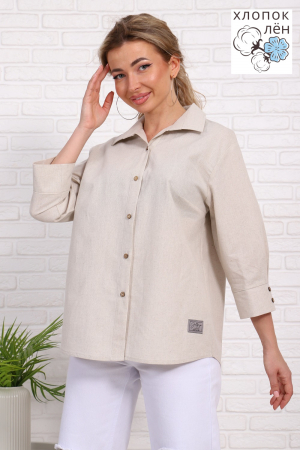 Полульняная рубашка женская, свободного кроя в эко стиле с натуральными кокосовыми пуговицами и с комфортным рукавом 3/4 (с широким манжетом). Центральная встречная складка на спинке. Воротник со свободной посадкой, без фиксации на пуговицу. Ткань полулён: хлопок 70% и лён 30% (по фактуре мягкая, даёт незначительную усадку, утюжится легко). Полулён обладает высокой воздухопроницаемостью, гигроскопичностью, гипоаллергенностью, антибактериальностью. Фактура ткани имеет характерные для льняных волокон утолщения и вкрапления - это особенность ткани, браком не является. Данная модель рубашки и стильная, и комфортная, она отлично сочетается с денимом и классикой. Оптимальный выбор для лета и на все сезоны.