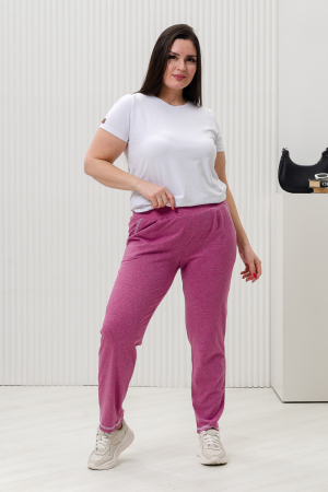Брюки свободные в верхней части и зауженные к низу, длинные, с карманами, со складками спереди по шву притачивания пояса, на эластичном поясе.