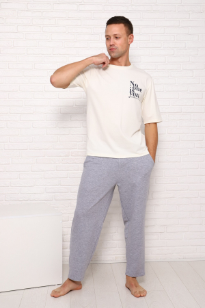Костюм мужской: футболка свободного кроя, с короткими рукавами и с лаконичным принтом на груди; брюки укороченные, с боковыми карманами, на эластичном поясе. Данный костюм вместе с женским костюмом (арт. 1038) составляет образ Family look.