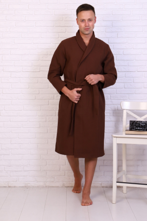 Вафельный халат воротник шаль. Рукав длинный. Боковые карманы. Размерный ряд от 44/46 до 64/66. Плотность вафельного полотна 242 гр. Доступна возможность розничного приобретения. При первой стирке изделие дает усадку, на размер, это нужно учесть при выборе размера! Рекомендация по уходу и эксплуатации за изделием - бережная ручная стирка при температуре не более 30 С, без отжима. Для безупречного разглаживания складок и заломов изделие должно быть влажным.