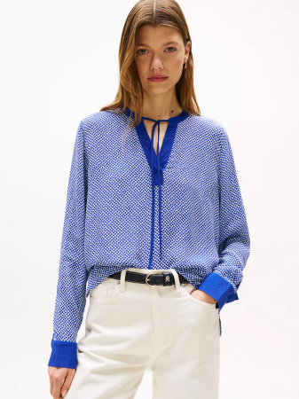 Tommy Hilfiger women's top. Our chic, V-neck pullover, in soft, lightweight viscose, features a bold cobblestone print that lends instant dimension to your look.