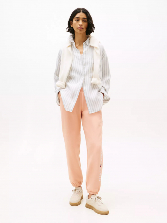 Tommy Hilfiger women's pant. Ideal for fall-to-spring weather wear, our medium-weight sweatpants are made from cotton-blend fleece that feels soft against the skin. Designed with slash side pockets, an elastic waistband with an internal drawstring, and elastic cuffs, this sporty pair features our embroidered logo at the leg.