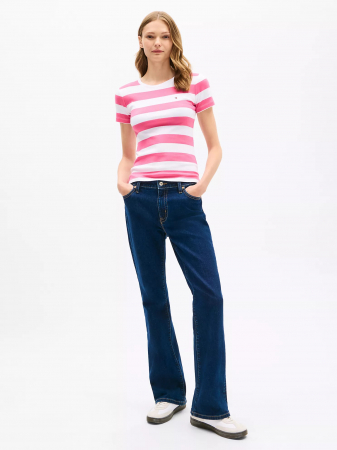 Tommy Hilfiger women's T-shirt. Bold rugby stripes lend a sporty feel of this comfy cotton tee.