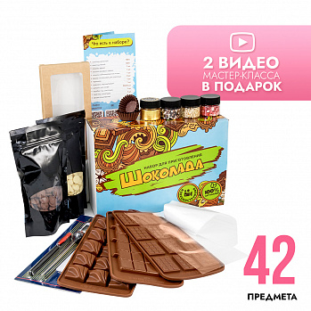 Набор для приготовления шоколада содержит в себе всё необходимое. Пользоваться набором очень легко и просто! С приготовлением шоколада справится даже ребенок, это подарит ему увлекательное, интересное и познавательное занятие! Внутри буклета вас ждет ПОДАРОК с подробными видео мастер-классами по приготовлению шоколадных изделий.