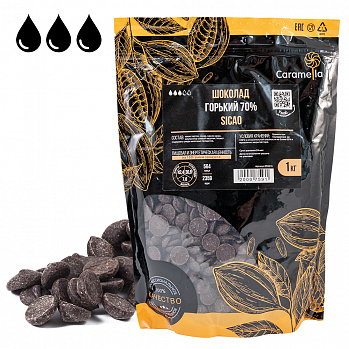 Классический горький шоколад в виде дисков. Шоколад идеален для производства шоколадных плиток, шоколадных фигур, конфет, покрытий кондитерских изделий, приготовления муссов, начинок, ганаша, шоколадного декора.