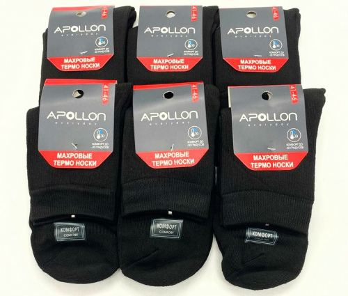 Носки мужские махровые. Размер 41-46 универсальный. Состав: 80 % хлопок, 15% полиамид, 5 % эластан. Цвет: черный. В упаковке 6 пар черного цвета. Минимальный заказ 1 упаковка.