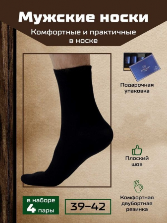 Набор мужских носков премиум в картонной коробке. Размер 39-42 универсальный. Состав: 77 % хлопок 15% полиамид 8% эластан. В составе набора 4 пары мужских носков разного цвета + сюрприз. Цвета: черный, темно-синий, темно-серый. Размер коробки (ДхШхВ): 18 см х 11,5см х 5,5см. Минимальный заказ 1 набор.