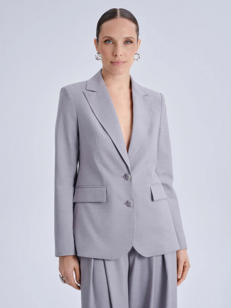 Женский жакет в благородном сером оттенке — классическая вещь с современным акцентом. Приталенный силуэт подчёркивает фигуру, создавая элегантную линию плеч и мягко акцентируя талию. Модель выполнена из комфортной смесовой ткани: сочетание триацетата, вискозы и шерсти обеспечивает благородную фактуру, мягкость и хорошую посадку, а добавление спандекса гарантирует лёгкую эластичность.
