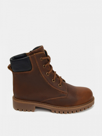 Коричневые ботинки ASPEN-D из натуральной кожи для мальчика. Мягкая деталь на пятке обеспечивает прилегание, шнуровка меняет плотность посадки, молния позволяет быстро обуваться. Текстильные подкладка и стелька пропускают воздух, одновременно утепляя пару. Подошва из ТЭП прочная, не промокает и долго служит. Ботинки детские выдержат активные ежедневные прогулки и школьные будни.