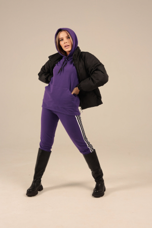 Костюм женский с худи. В комплекте идут удобный худи и брюки свободного силуэта. Изготвлен из мягкого футера. Хорошо подходит для занятий спортом.
