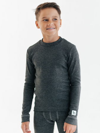 Базовое термобелье для детей: темно-серый облегающий свитшот. Двухслойный трикотаж поможет сохранить тепло и подарит комфорт в любую погоду. Сшито с учетом анатомических особенностей. Можно носить в качестве поддевы зимой.
