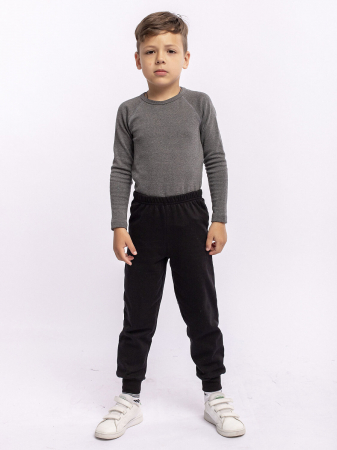 Кальсоны для мальчика черные на резинке. Верхний срез обработан швом в подгибку с предварительно притачанной резинкой. Манжеты из рибаны с эластаном.