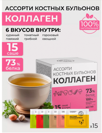 Отличный вариант для тех, кто заботится о своем здоровье и красоте - это наш уникальный натуральный продукт, насыщенный вкусом и полезными свойствами - "Костный бульон ассорти". Этот легко усваиваемый продукт поможет укрепить костную ткань и суставы, улучшить структуру кожи, волос и ногтей, а также поддержать здоровье кишечника, иммунитет и контроль веса. В каждой упаковке "Костного бульона ассорти" вы найдете пять разнообразных вкуса: говяжий, куриный, грибной, гороховый, а также томатный. Благодаря этому, вы сможете выбрать именно тот вкус, который подойдет именно вам, сделав перекус в офисе, на прогулке или в дороге еще более приятным и питательным. В "Костном бульоне ассорти" содержится натуральный белок с 19 аминокислотами, который не только насытит вас, но и улучшит ваше общее состояние. Этот продукт - отличный способ не только насладиться вкусом, но и позаботиться о своем здоровье.