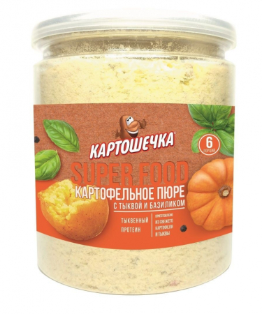 Подружим Вас с овощами за 5 минут! Для приготовления наших готовых картофельно-овощных смесей для гарниров мы используем высококачественные картофельные хлопья, приготовленные из свежего картофеля и натуральный порошок тыквы. Без добавления усилителей вкуса и ароматизаторов. SUPERFOOD - гарнир из 5-ти овощей и тыквенного протеина у вас на тарелке через 5 минут. Достаточно залить горячей водой и немного подождать. 4,2 гр клетчатки на одну порцию, VEGAN, 6 порций в удобной банке. Состав: картофельные хлопья (картофель 99%, эмульгатор Е471, стабилизатор Е450i, антиокислители: Е223, Е304, регулятор кислотности лимонная кислота, краситель куркумин), тыква порошок, тыквенный протеин, сахар, лук жареный (лук сушеный, растительное масло, соль), соль, картофельный крахмал, кукурузный крахмал, морковь сушеная, базилик сушеный, лук зеленый сушеный, перец черный молотый, куркума, краситель бета-каротин.