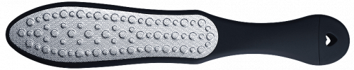 Эта лазерная педикюрная терка для ног имеет две рабочие стороны с трущими поверхностями и дополнительную пилку. Рисунок на одной из поверхностей выполнен в форме солнышек. Данная терка для ног выполнена монолитной, внутри она имеет пустоты, благодаря чему не может утонуть в воде. Это очень удобно, если пользоваться прибором в ванной. Ручка очень удобна и не будет скользить в руке.