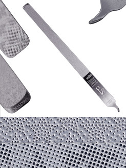 Пушпи Quadro - (пушер + пилка) № 6 HOOK - Крюк на основе металлических лазерных пилок. Форма наконечника-пушера - скругленный квадрат, которому эта серия пушпи и обязана своим названием - Quadro. С одной стороны пушера - полировочная поверхность, что позволяет заполировывать поверхность ногтя сразу при отделении его от кутикулы.Пилочка также имеет две разные рабочие поверхности. Medium - Fine. Форма наконечника Hook - имеет вид изогнутого крюка. Им удобно доставать вросший ноготь, спиливать врастания, чистить уголки.