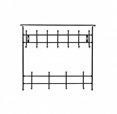 Настенная вешалка с полкой Nika 11 крючков, черная ВПТ11ч дополнит интерьер прихожей. Выполнена из стали с порошковым покрытием, устойчива к коррозии и механическим повреждениям. Оснащена специальной полкой для головных уборов.