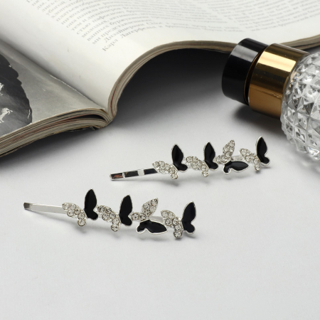 Невидимки для волос «Аннабелль», набор 2 шт., бабочка чёрный, 6.5 см, серебро (арт. 10067645)