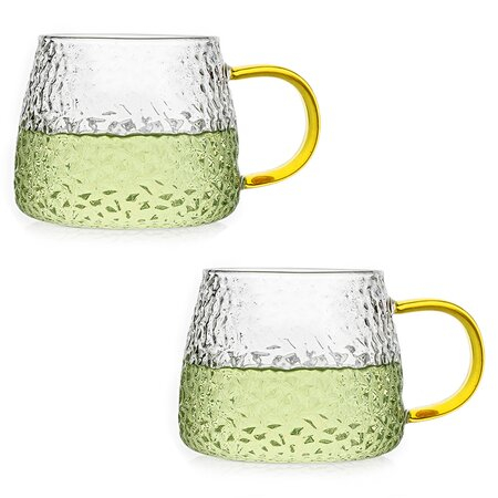 Кружка рельефное стекло 420 мл, желтая ручка, упаковка 2 шт (арт. S-740)