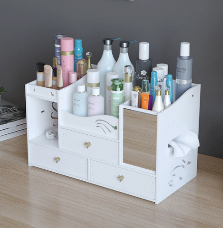Комодик (органайзер) для косметики займет минимум места. Его можно поставить на полку, на любой туалетный столик, в случае ненадобности на время убрать в шкаф.