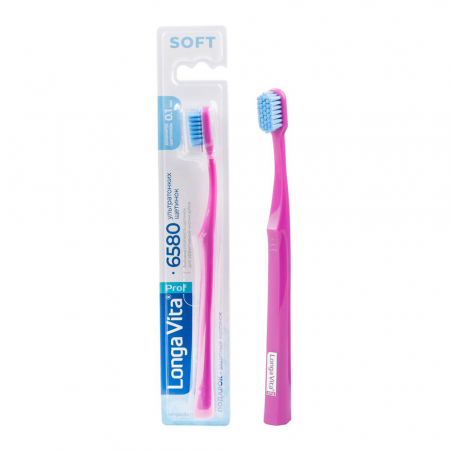 Высокая плотность пучков ультратонкой (0,1 мм в диаметре) мягкой щетины образует бархатистую очищающую поверхность. Содержит 6580 тщательно отполированных щетинок. Ультратонкие щетинки эффективно проникают в труднодоступные места, мягко массируют десны для улучшения микроциркуляции в тканях. Защитный колпачок в подарок.