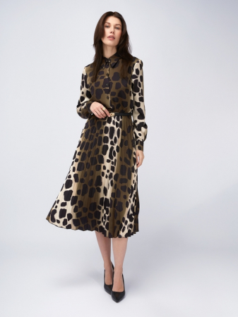 Платье с юбкой плиссе OD-883-1 леопард коричневый с хаки (арт. OD-883-1)