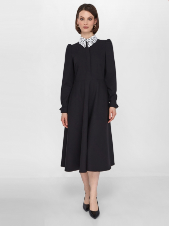Платье с кружевным воротником потайная планка OD-886-1 черный (арт. OD-886-1)