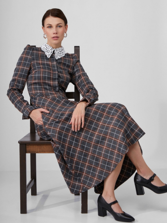 Платье с кружевным воротником потайная планка OD-886-3 крупная клетка джинс (арт. OD-886-3)