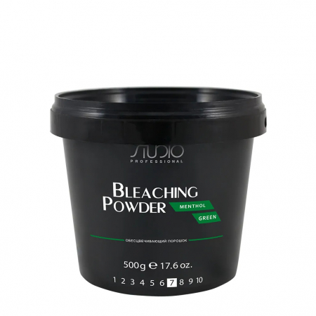 Обесцвечивающий порошок для волос Menthol Green универсального действия для всех типов работ обесцвечивания мелирования создания бликов обесцвечивает до тонов Эффективно обесцвечивает окрашенные и натуральные волосы Оптические стабилизаторы позволяют камуфлировать фон осветления Содержит загустители которые обладают увлажняющими и защитными свойствами предотвращают повреждения волос и кожи головы Провести диагностику волос и кожи головы В неметаллической ёмкости смешать обесцвечивающий порошок с окислительной эмульсией ActiOx vol vol vol для всех видов работ vol без контакта с кожей головы в пропорции от до в зависимости от выбранной техники до однородной консистенции После смешивания порошка и окислителя дать постоять смеси около минуты и повторно размешать Наносить на сухие волосы без предварительного мытья Время выдержки до минут По окончании времени выдержки тщательно смыть обесцвечивающую смесь обильным количеством воды Для завершения обесцвечивания использовать шампунь и бальзам после окрашивания Studio Professional