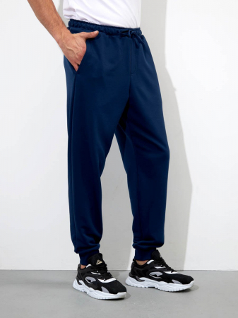 Трикотажные мужские брюки из хлопка с добавлением полиэстера, мягкие и приятные на ощупь, не сковывают движения, обеспечивая максимальный комфорт. На передних половинках вместительные карманы. По низу брюки собраны мягкой трикотажной резинкой. Пояс на резинке. Дополнительно в поясе имеется шнур.