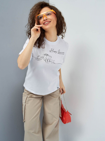 Женская футболка F5, Comfort fit (свободный силуэт), круглый вырез горловины, короткий рукав. Выполнена из классического трикотажного полотна.