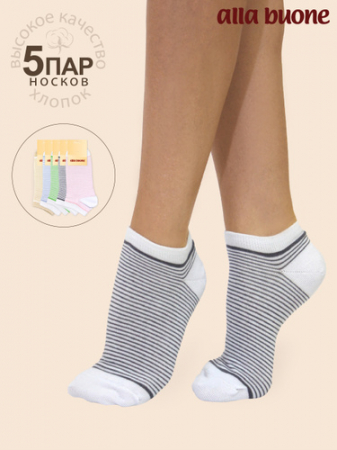 85% хлопок, 10% полиамид, 5% эластан.Укороченные носки женские в полоску. 5 пар