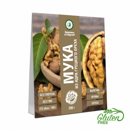 Мука ядра грецкого ореха – это высококалорийный безглютеновый полезный продукт, в процессе своего производства сохранивший ценные масла, витамины, ПНЖК Омега-3, микро- и макроэлементы. Мука грецкого ореха нашла широкое применение в кулинарии, добавляя ореховые нотки любимым блюдам и придавая им полезные свойства. Муку рекомендуется добавлять в готовые блюда, чтобы сохранить её первозданную пользу для организма, но не возбраняется и заменять 10-20% пшеничной муки в рецептах мукой грецкого ореха.
