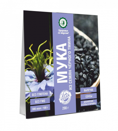 В составе муки нет ГМО, сахаров и химических примесей, она полностью натуральна на все 100%. Мука без содержания глютена. При ее производстве использовались современные сберегающие технологии, которые позволили донести до вашего стола все богатство витаминов и пользу чёрного тмина в неизменном виде.