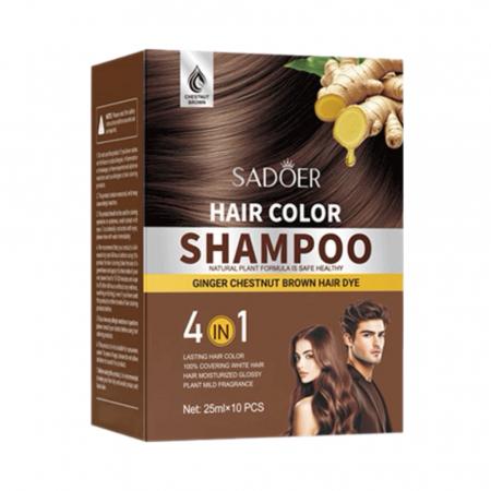 SADOER представляет шампунь-краску с имбирем, цвет каштан. Это средство объединяет мытье и окрашивание волос. Формула, обогащенная растительными экстрактами, мягко воздействует. Шампунь питает и ухаживает за вашими волосами.