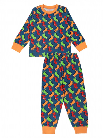 Пижама для мальчика с красочным принтом. Кофта свободного кроя не стесняет движений. Брючки на мягкой резинке с эластичными манжетами по низу изделия. Ткань интерлок теплая и приятная к телу.