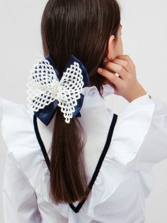 Нарядный, многослойный бант для волос, на прочной резинке. Выполнен из атласной ленты, бусин и страз. Украсит и разнообразит элегантный школьный образ.