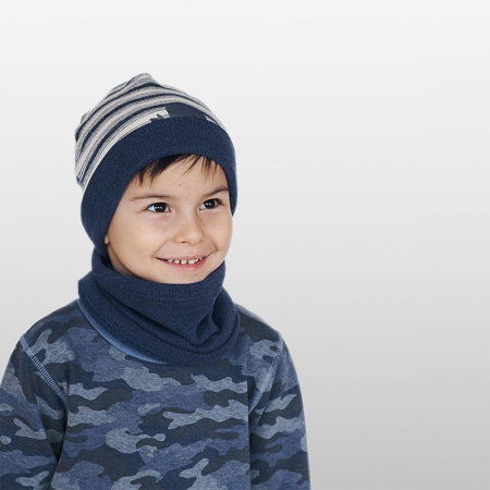 Уютный комплект (шапочка с завязками и шарф-снуд) для мальчика.