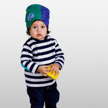 Демисезонная шапочка, с необычным принтом, для мальчика.