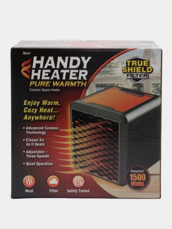 Портативный керамический мини-обогреватель Handy Heater Pure Warmth обеспечивает быстрое и удобное нагревание помещения. Просто выберите нужный режим и установите комфортную температуру в диапазоне от 15 до 32 градусов Цельсия, чтобы быстро согреть свое личное пространство. Обогреватель обладает мощностью 1500 Вт и использует керамическую технологию, которая превращает холодный воздух в приятное тепло.