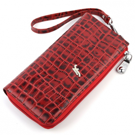 Закрывается на молнию. Внутри - 4 отделения для купюр, отделение для монет на молнии, 18 кармашков для пластиковых карт. Снаружи: на оборотной стороне карман на молнии. В комплекте съемный ремешок на запястье, с удобным карабином.