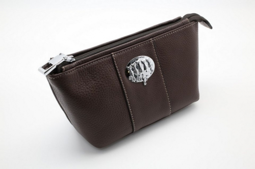 Женская кожаная косметичка от Sergio Valentini. Закрывается на молнию. Внутри одно отделение и шесть боковых кармашков на подкладке. Снаружи, на тыльной стороне, карман на молнии.