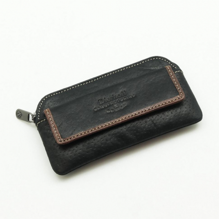 Мужская кожаная ключница от Dierhoff. Закрывается на молнию. Внутри металлическое кольцо на цепочке. На лицевой стороне карман для мелких предметов.