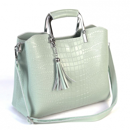 Женская сумка из натуральной кожи под крокодила мятного цвета.