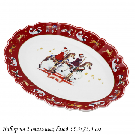 305-173 Набор из 2 овальных блюд 35,5х23,5х3,5см НОВЫЙ ГОД в под.уп.(х12)Фарфор (арт. 305-173)