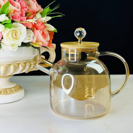 Чайник заварочный из жаропрочного стекла. Крышка изготовлена из бамбука и украшена кристалом