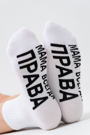 Комплект женских носков 2 пары. Широкая резинка. На стопе надпись Мама всегда права.