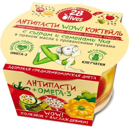 Антипасти WOW! Коктейль с крем-сыром и семенами Чиа (перчики, патиссончик, оливки, вяленые томаты)