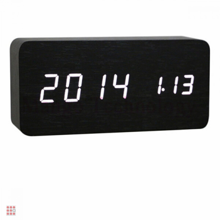 Электронные часы VST-862 в деревянном корпусе с белой подсветкой.